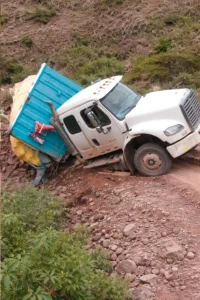 Se trata del camión de placa V3C-767 que transportaba 16 toros de distintas razas. 13 de ellos están marcados con la letra «EC» con pintura amarilla y los otros tres con la letra «R» con pintura roja.