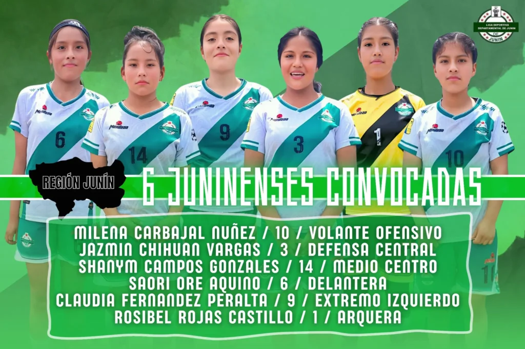 PRIMICIA.- Seis jovencitas de la región Junín, fueron convocadas a la selección peruana Sub-14, por la unidad técnica de menores de la Federación Peruana de Fútbol, para el micro ciclo que se realizará en la Videnita de Chincha del 02 al 07 de diciembre.