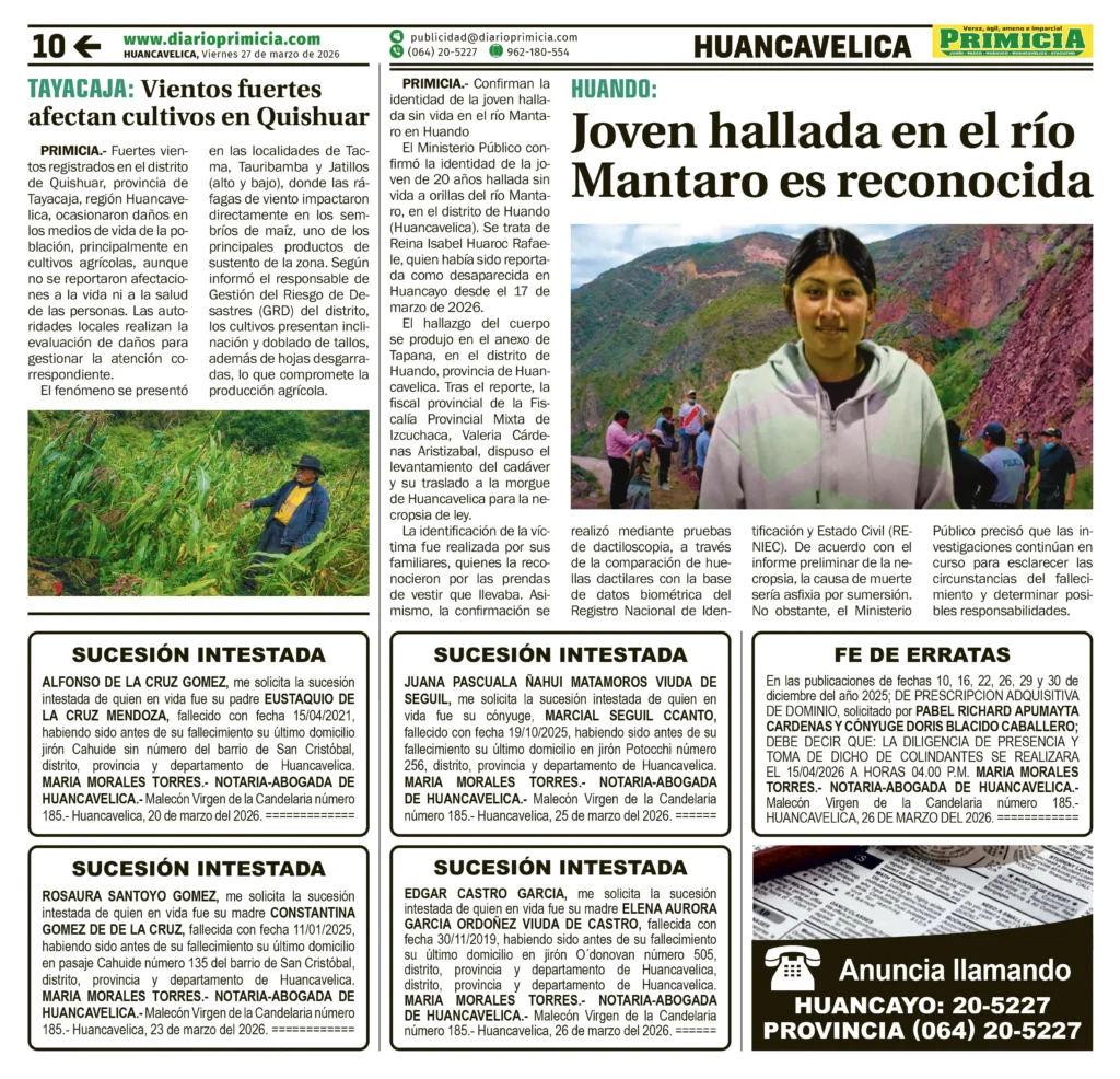 HUANCAVELICA SUCESIÓN INTESTADA SUCESIÓN INTESTADA – VIERNES 27/MAR/2026 viernes, 27 de marzo de 2026 | 6:45 AM SUCESIÓN INTESTADAMARIA MORALES TORRESNOTARIA – ABOGADA DE HUANCAVELICANavegación de entradasAnterior PETITORIO MINERO HUANCAVELICA – VIERNES 27/MAR/2026Siguiente PUBLICACIÓN JEE JUNÍN – VIERNES 27/MAR/2026