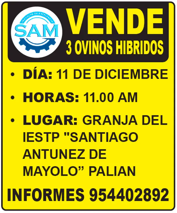 VENTA DE PRODUCTOS VENTA DE PRODUCTOS – MIÉRCOLES 03/DIC/2025 3 de diciembre de 2025 INSTITUTO DE EXCELENCIASAMVENDE3 OVINOS HIBRIDOSPost navigationAnterior EMPLEOS – MIÉRCOLES 03/DIC/2025Próximo VENTA DE INMUEBLES – MIÉRCOLES 03/DIC/2025