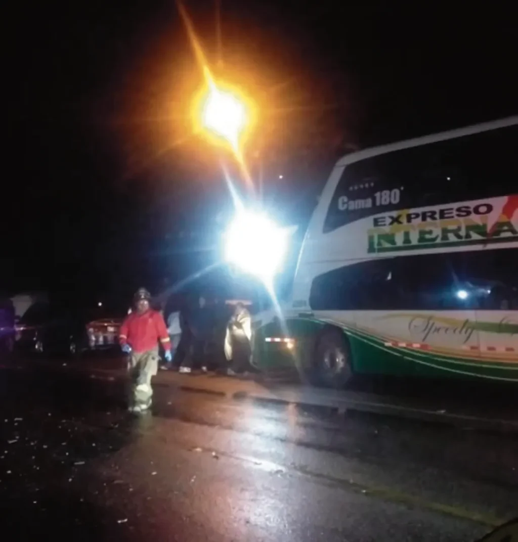 PRIMICIA.- Continúa la racha de accidentes de tránsito, un violento choque se registró cerca de la medianoche en la carretera central margen derecha sector de “Pacamarca”, donde un automóvil y el ómnibus interprovincial de la empresa ”Expreso Internacional”, colisionaron frontalmente dejando daños materiales y personales.