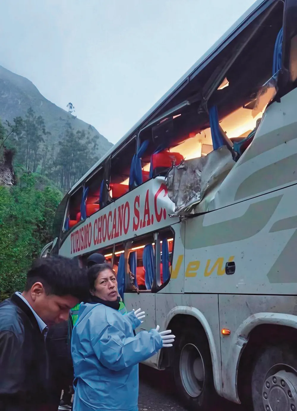 PRIMICIA.- Una enorme roca cayó violentamente sobre un ómnibus de la empresa Turismo Chocano que cubría la ruta Uchiza hacia Lima. El trágico accidente ocurrió la madrugada de ayer en el sector de Batanchaca, distrito de Yarusyacán.